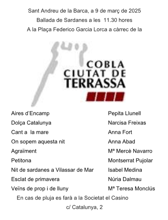 11.30 h. – Sardanes amb la Cobla Ciutat de Terrassa