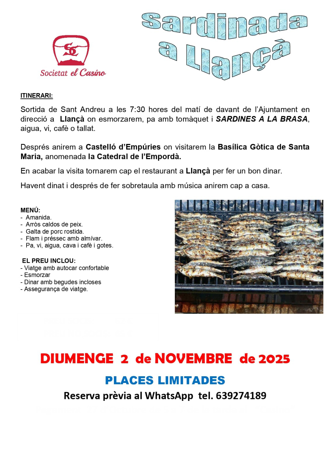 Places limitades. Reserva prèvia al WhatsApp 639 274 189